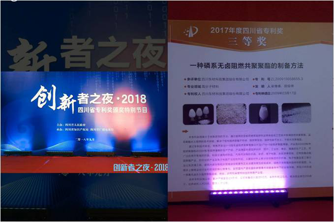 在之前的四川省专利奖评审委员会评审过程中,总共42个专利被省政府授予2017年四川省专利奖,其中公司申请的国家发明专利《一种磷系无卤阻燃共聚聚酯的制备方法》荣获三等奖。